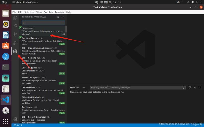 1.打开VScode,点开Extensions,搜索C++插件安装