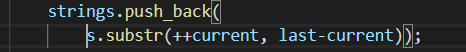 单看这条语句的语义会发现仅仅是使用一个简单的string的substr函数将所得子串push_back到strings。但是在阅读时我却对于substr的参数传递产生了疑惑,到底是先执行了++current,还是先执行了last-current?