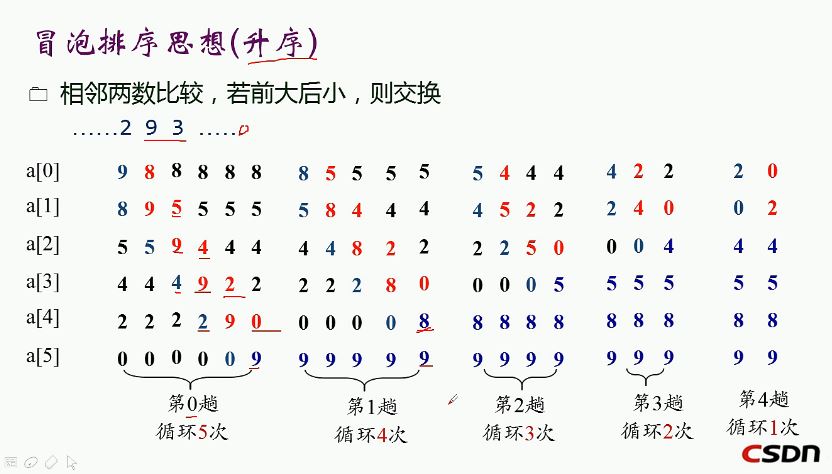 for(i=0;i<10-1;i++)//n个数的数列总共扫描n-1次
