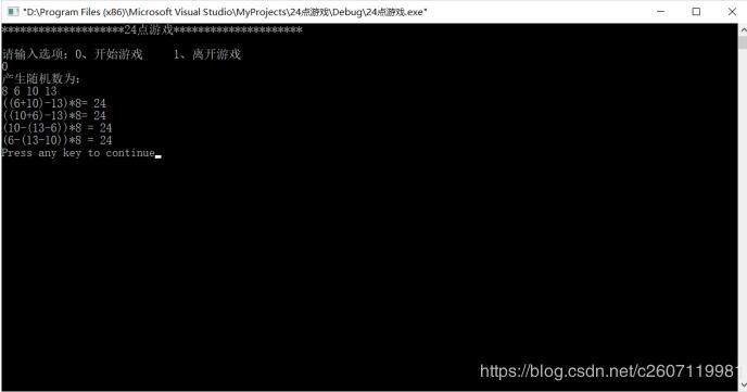 以上就是现实香烟最近收集整理的关于C语言实现纸牌24点小游戏的全部内容,更多相关C语言实现纸牌24点小游戏内容请搜索靠谱客的其他文章。