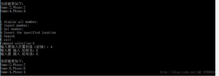 1.插入学生信息 2.显示学生信息 3.删除学生信息 4.在指定位置插入学生信息 5.查找学生信息