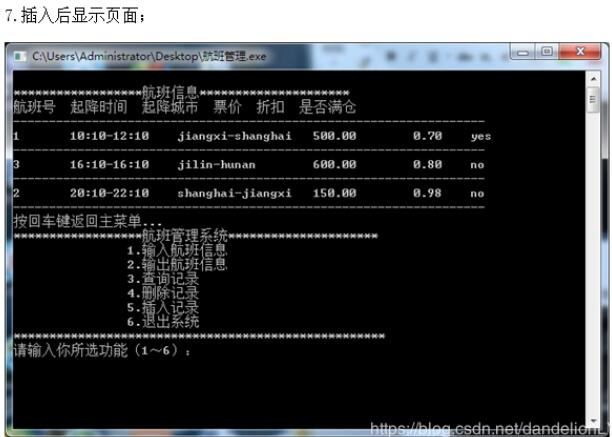 printf("请输入插入位置的航班号,将新纪录插入在该航班号前:n");