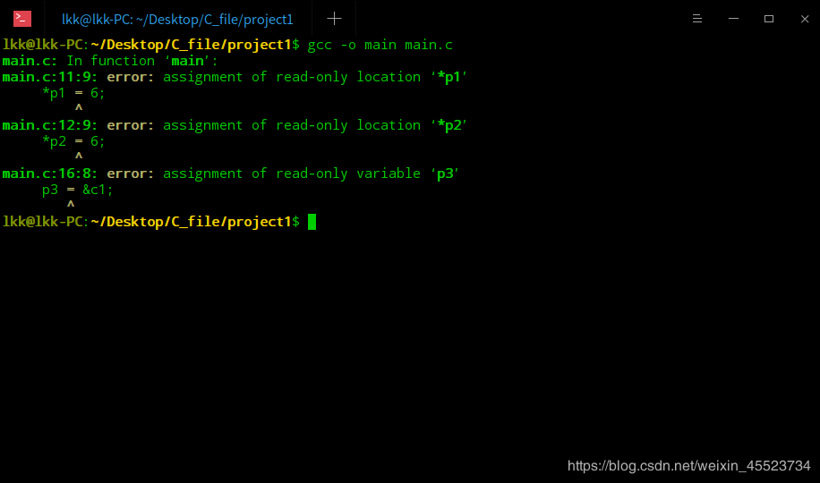 而char *const 刚好相反,表示指针的内容是只读的,即指针指向的位置是不可修改的,但是指针指向的内存是可读可写的。