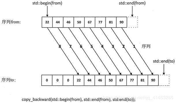 - 参数:参数1和参数2指定一个容器的范围。参数3指定另一个容器的开始范围
