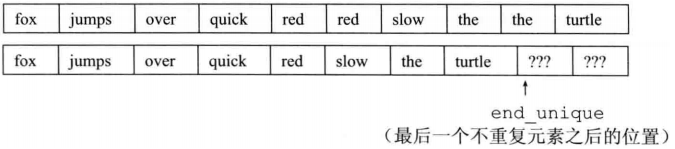 - 返回值:返回删除重复元素之后的最后一个元素的后一个位置