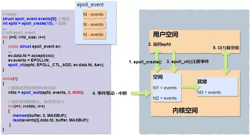 - O(1)复杂度,返回的"nfds"是一个确定的可读写的数量,相比于之前循环n次来确认,复杂度降低了不少;