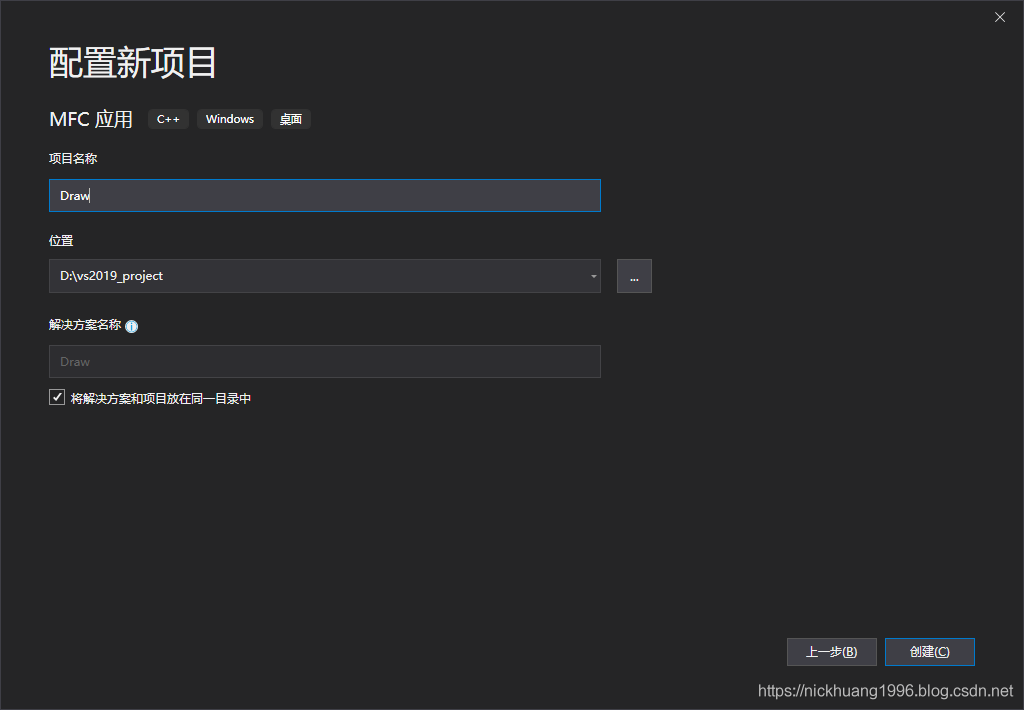 1.点击文件-->新建-->项目,选择MFC应用,点击下一步