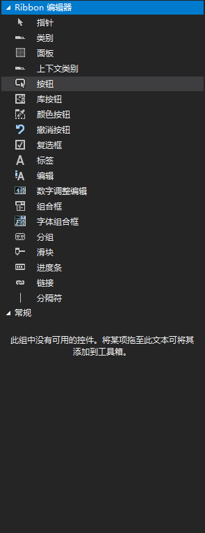 然后点击Ribbon编辑器,可以看到有很多种类的控件
