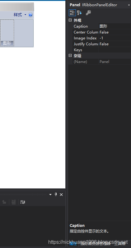 2.我们点击这个面板,在属性窗口中的外观下面,修改Caption,把面板1改为图形,这就算给这个面板改了名字