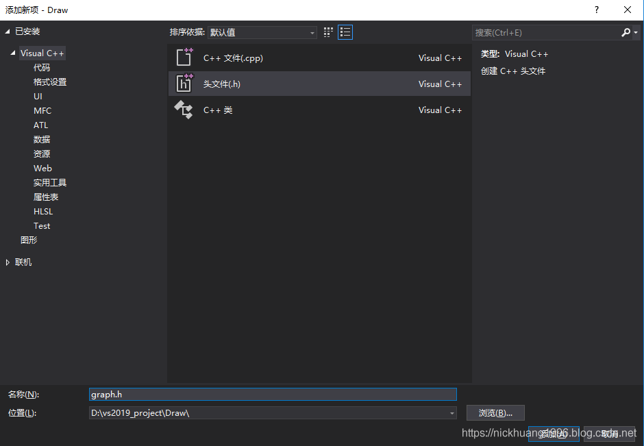 我们右键头文件,选择添加-->新建项,弹出如下界面;