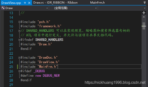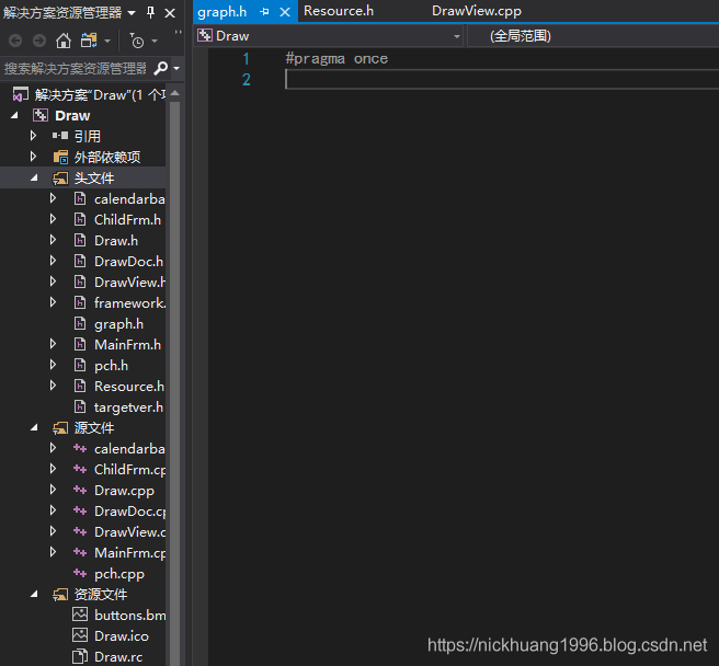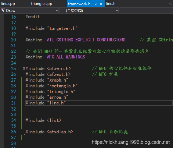 我们可以这样做:打开framework.h(vs2017里是stdafx.h),我们在这里include一下我们的graph抽象类