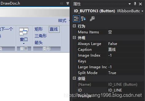 4.修改这个按钮的属性中杂项的ID,改为ID_RECTANGLE