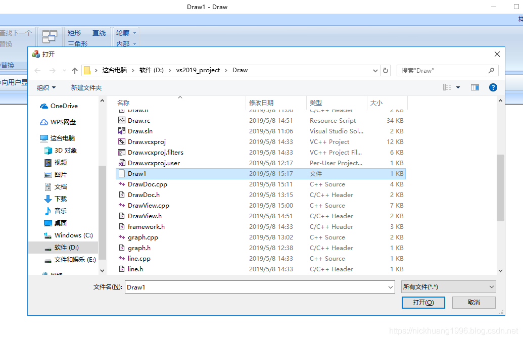 6.可以看到成功打开(注意:这个文件不能用刚才自己写的MFC程序自带的打开来打开这个文件,因为打开的文件不是被序列化过的,因此打开会失败!)