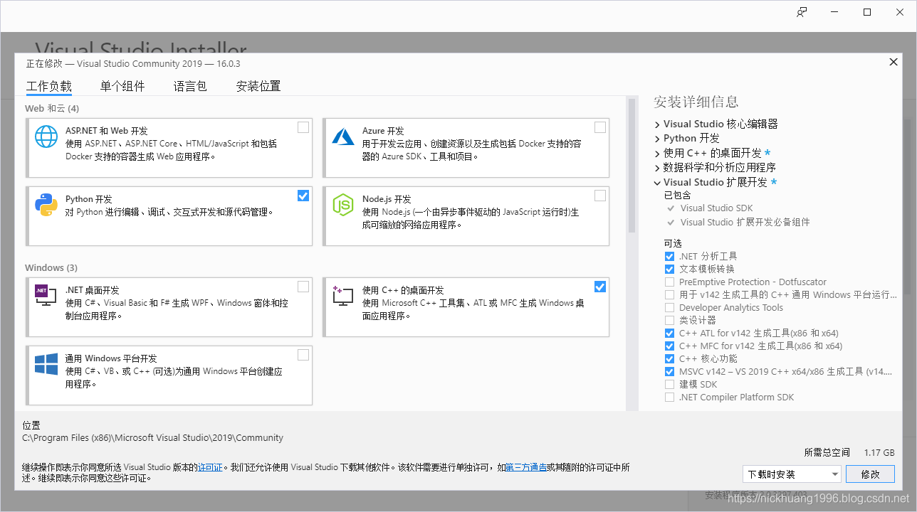 有许多新手不知道MFC在vs2019里的安装选项,其实它不会在勾选工作负载时自动默认勾选,而通常需要人为勾选,具体安装步骤如下:(安装时间不是很长,网速够快几分钟就下载完毕)