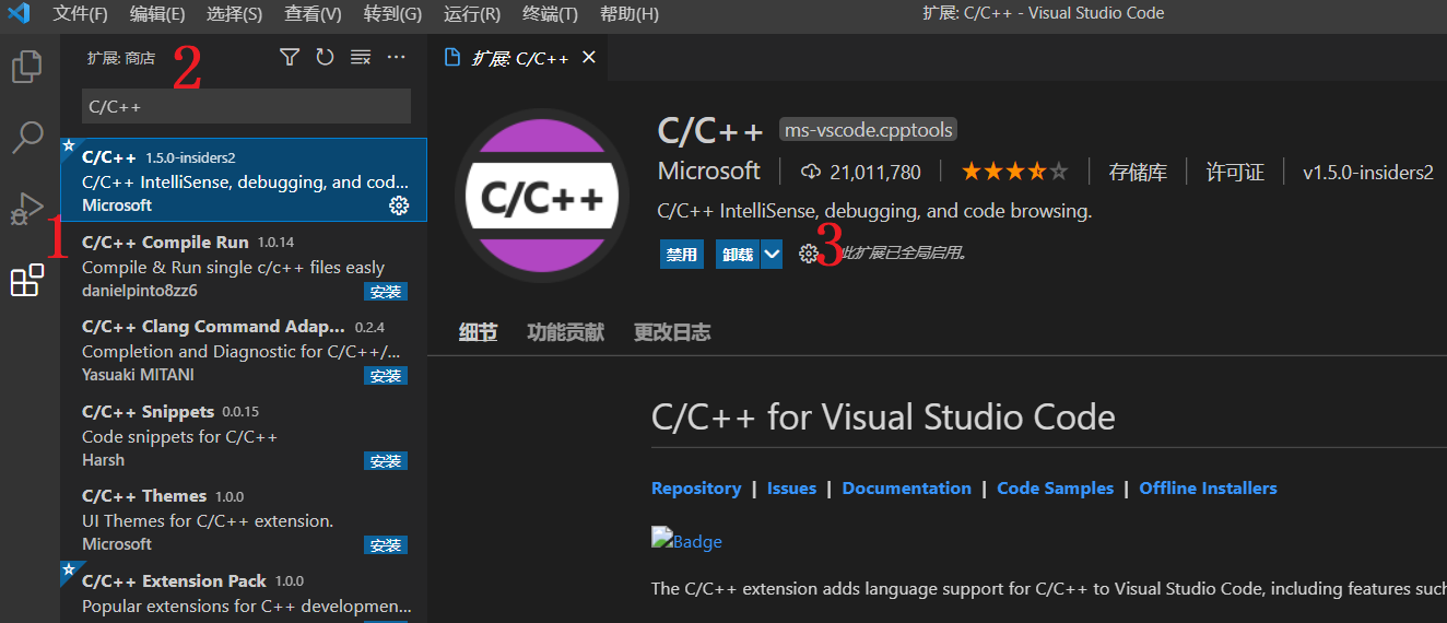 2、安装C/C++插件