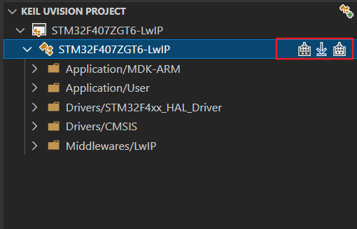 5、切换 keil Target:点击项目的切换按钮,可以在多个Keil Target 之间切换