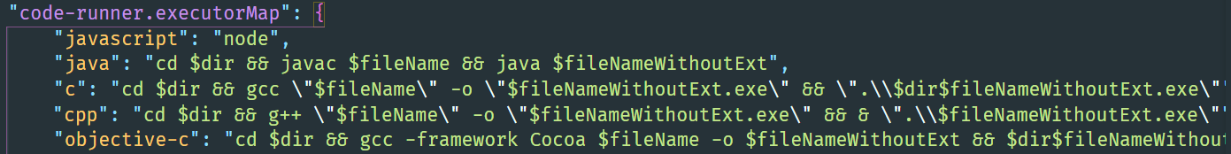 "cpp": "cd $dir && g++ "$fileName" -o "$fileNameWithoutExt.exe" && & ".\$fileNameWithoutExt.exe"",