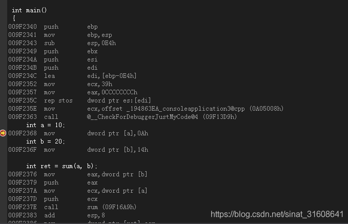 使用vs2017调试,查看反汇编