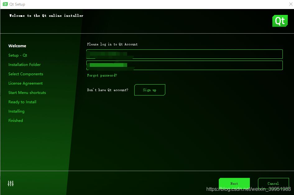 1.启动需要登录账号,若没有,需要在 Qt 官网进行账号注册,注册的账号密码牢记,切记!!!,然后按下图步骤依次进行安装。