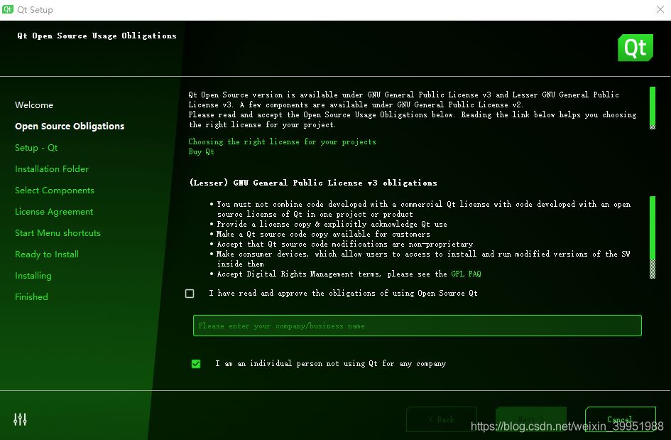 2. 【开源义务】如果是个人使用,勾选最底下的复选框;如果是公司,需要填写公司名称。