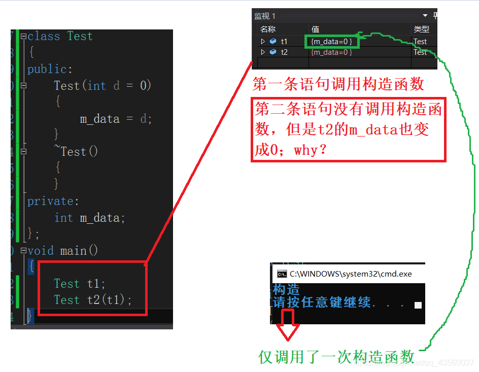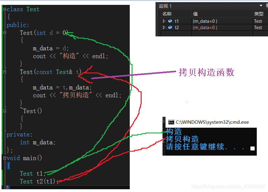1.拷贝构造函数是构造函数的一个重载形式;
