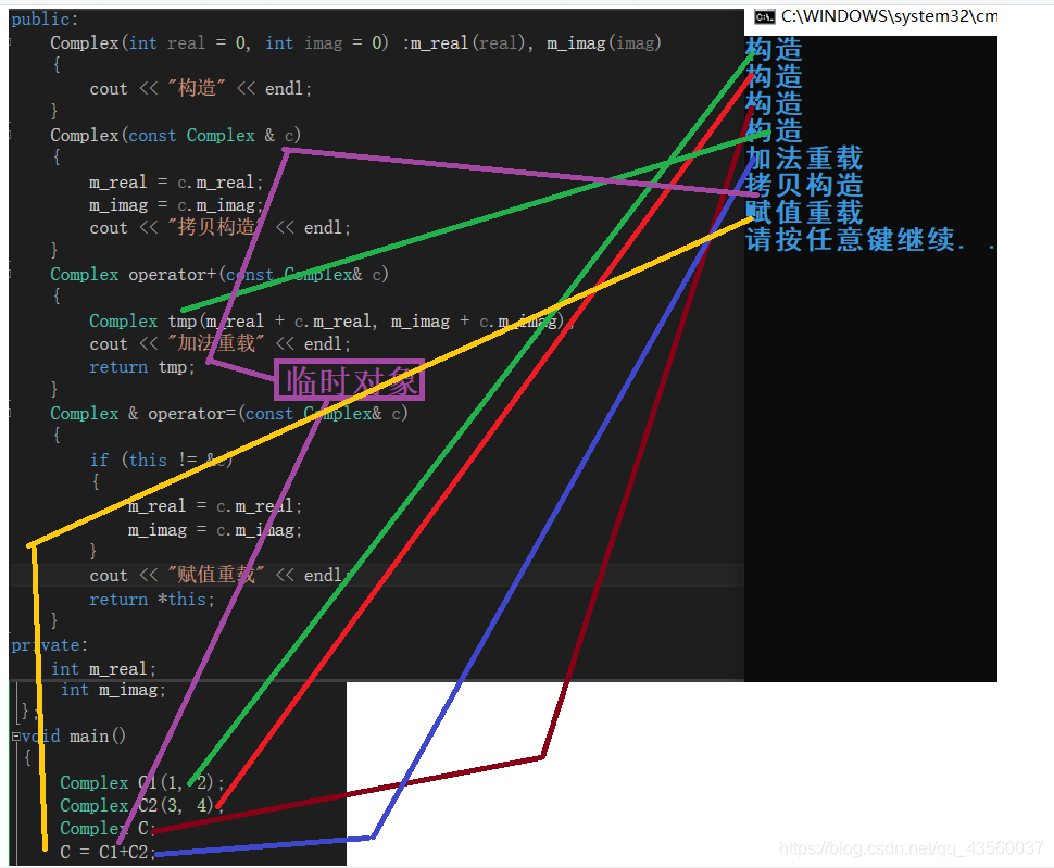 1.调用四次次构造函数,构造C1C2C3以及在operator+内部的tmp;