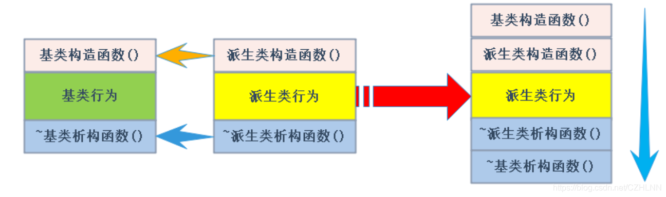 派生类对象析构清理先调用派生类析构再调基类的析构,这里 c++ 的编译器就保证了先调用子类的析构再调用父类的析构。