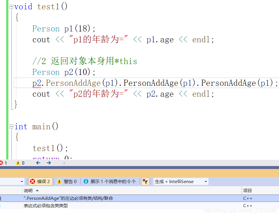 //this指向p2的指针,而*this指向的就是p2这个对象的本体