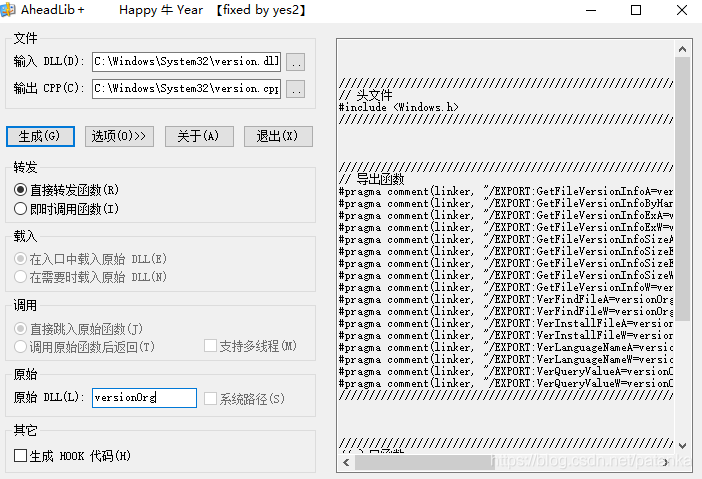 祭出了AheadLib这个工具,选择简单的直接转发函数,生成了version.cpp。