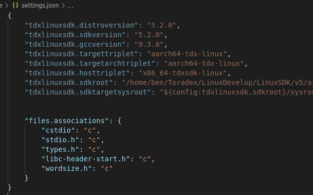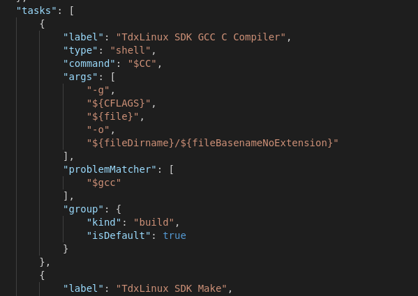 这里定了一些变量,其他文件可以通过 ${config:var} 来引用,例如 ${config:tdxlinuxsdk.sdkroot}。
