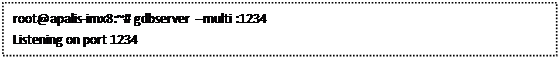 在 Apalis iMX8 上运行 gbdserver 程序,侦听端口为 1234。