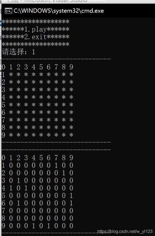 第一个数组是玩家在游戏看到的数组,第二个数组是存放雷的数组,在游戏中第二个数组不会被打印