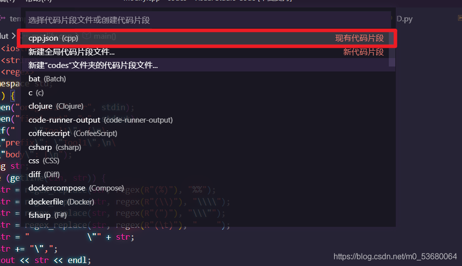 以上就是轻松跳跳糖最近收集整理的关于详解在VScode中添加代码块(含C++指令生成代码)的全部内容,更多相关详解在VScode中添加代码块(含C++指令生成代码)内容请搜索靠谱客的其他文章。