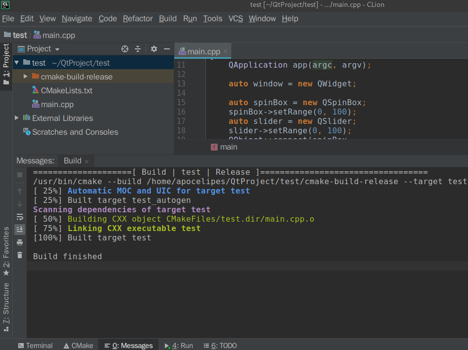至此CLion已经可以正常配合Qt进行开发。