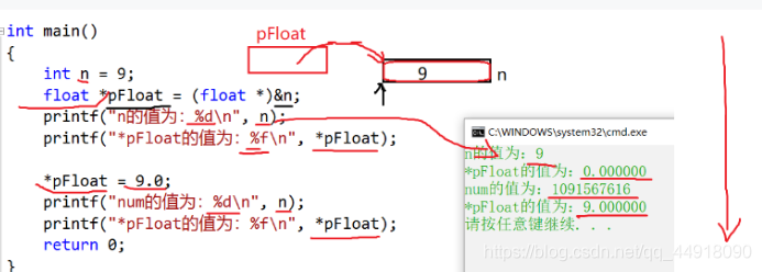 printf("*pFloat的值为:%fn", *pFloat);