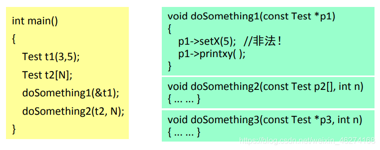 t1.set_time(2,2,2); // 试图改变t1对象的成员数据, 报错