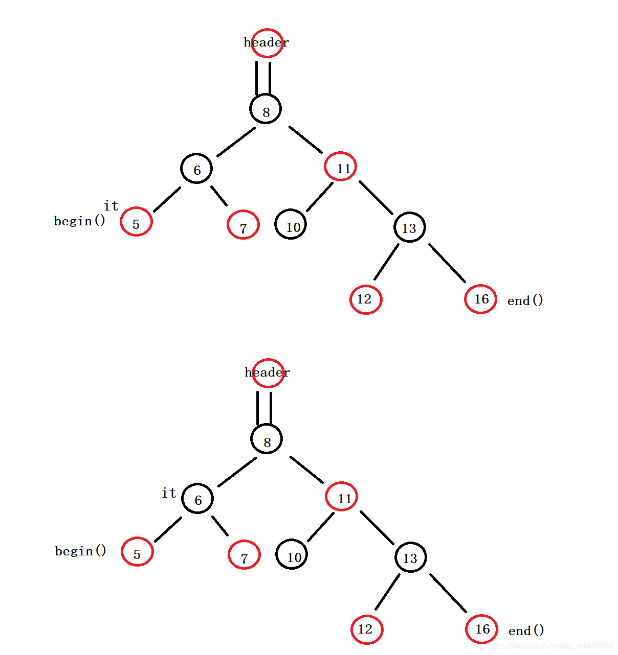 迭代器的begin()位置应该是树中最小的结点,而树中最小的结点就是树的最左结点;迭代器的end()位置应该是树中最大的结点,而树中最大的结点就是树的最右结点