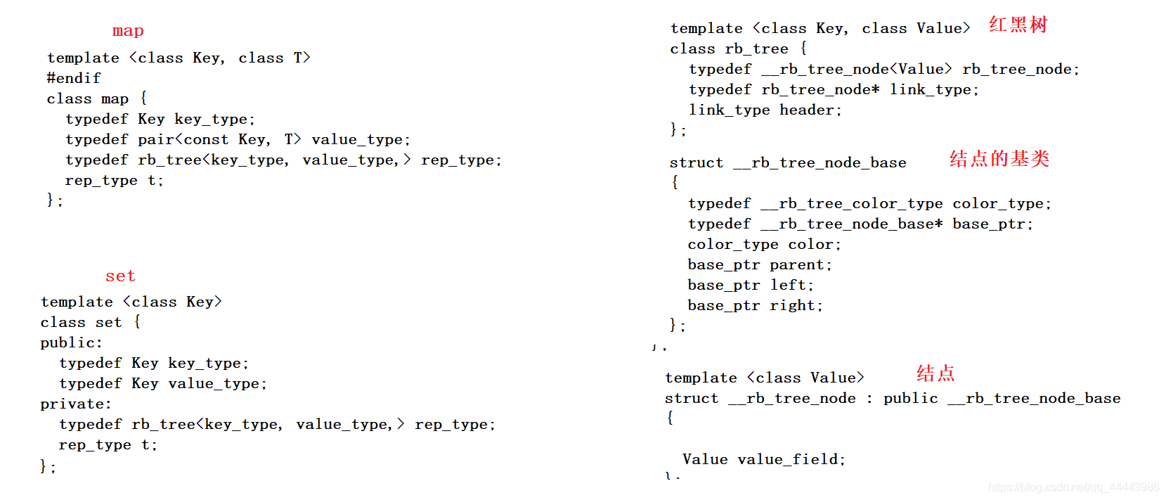 我们现在通过STL源码来简单剖析一下map和set中如何利用红黑树来实现各自不同的功能的
