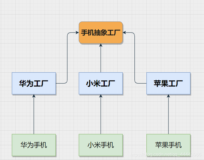 定义思想:工厂父类负责定义创建产品对象的公共接口,而工厂子类则负责生成具体的产品对象,这样做的目的就是将产品类的实例化操作延迟到工厂子类中完成,即通过工厂子类来确定究竟应该实例化哪一个具体产品类