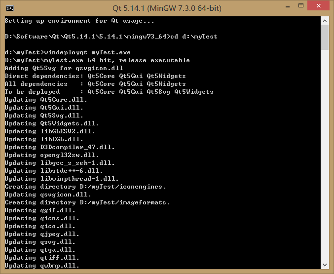 将myTest.exe复制到要发布的文件夹下,比如D:myTest下