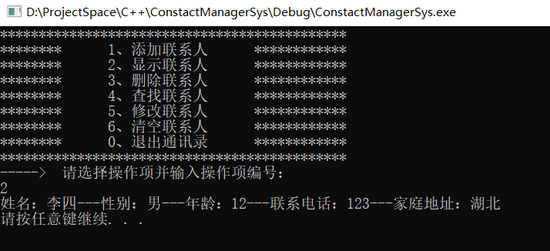 cout << "******** 2、显示联系人 ************" << endl;