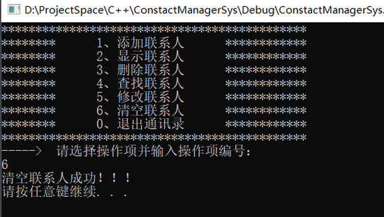 cout << "******** 6、清空联系人 ************" << endl;