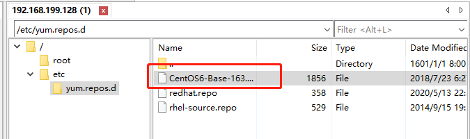 可以从网上下载国内大厂提供的yum源地址。我这里下载好了163网易提供的源地址文件CentOS6-Base-163.repo。