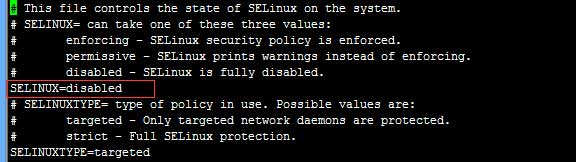 vi /etc/ selinux/config