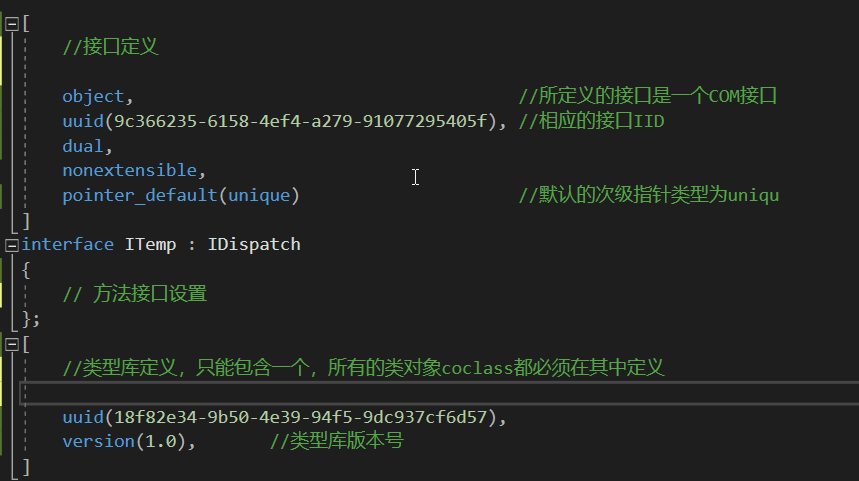 接口 ITemp 为之后配置 idl 所需要找到的接口名