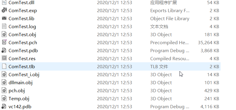 ComTest.tlb 是之后C++ 调用Com所需要包含的文件