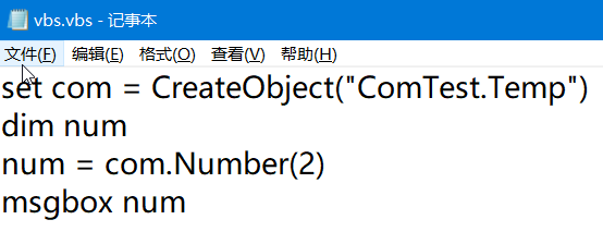 编写vbs代码 ComTest.Temp为“ATL简单对象”设置的“ProgID”而Number为类中的函数名