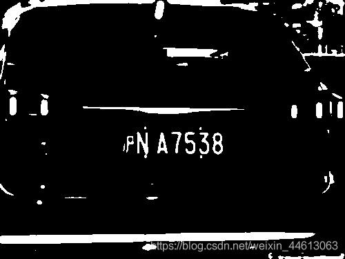 这个时候,车牌的轮廓已经初步被选出来了,只是还有一些白色块在干扰。