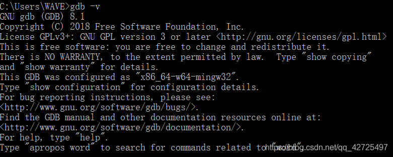 配置完毕后,快捷键win+r,输入cmd。在窗口依次输入gcc -v、g++ -v、gdb -v,若显示如下图,则表示配置成功;