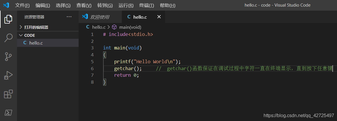 getchar(); // getchar()函数保证在调试过程中字符一直在终端显示,直到按下任意键